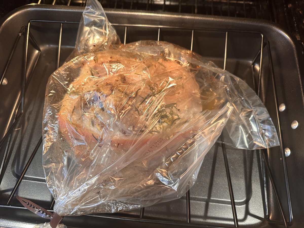 Carl's pork shoulder cooking in the oven bag.